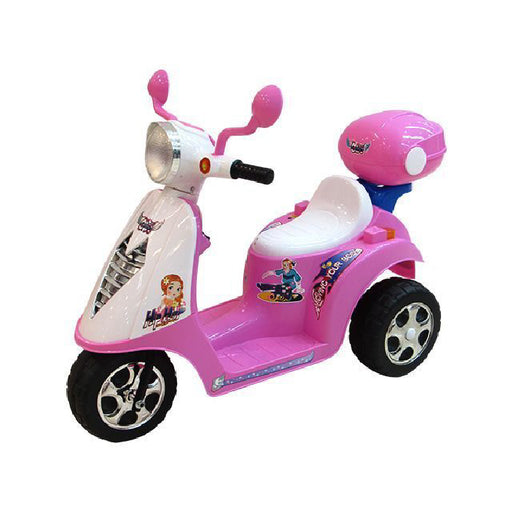 MOTOCICLETA RECARGABLE COLOR: ROSADO/BLANCO/PLATEADO 100%PP MARCA: SPACE STAR